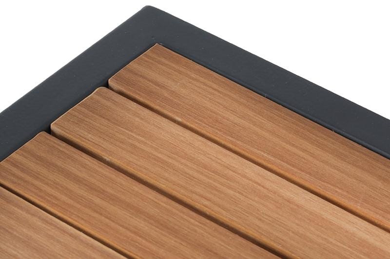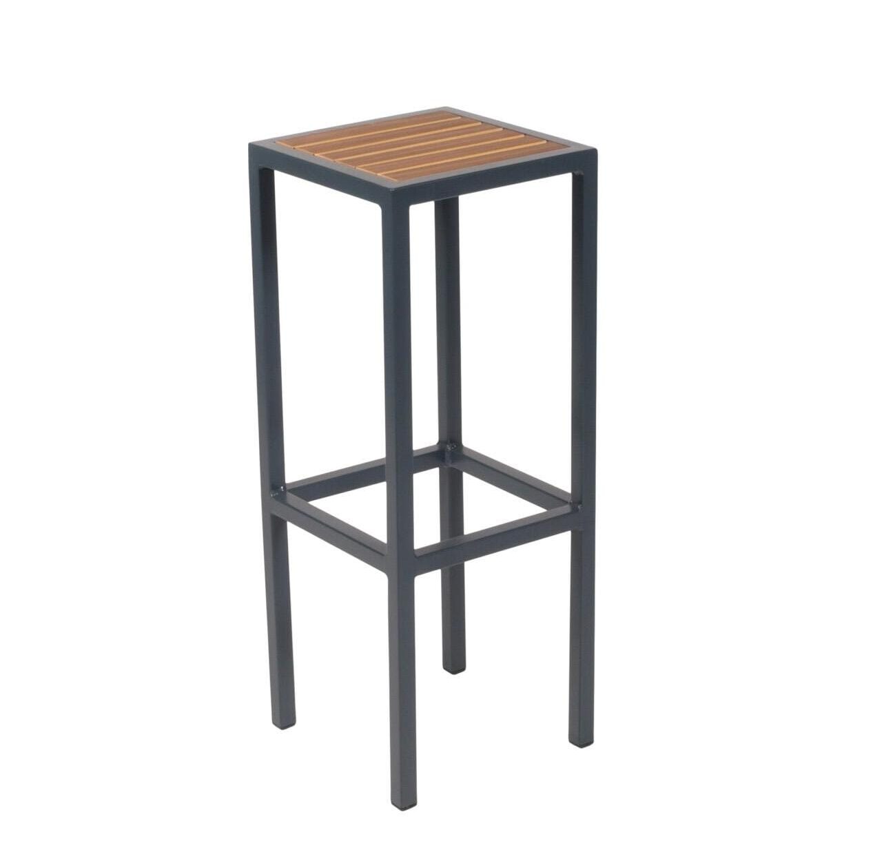 The Eva bar stool without a backrest is ideal for hospitality spaces that require functional and durable furniture. With a black aluminum frame and PVC slats in wood imitation, it is resistant to external influences. The stool is lightweight and easy to move, with the possibility of mounting a footrest for greater flexibility in use. The stool is certified for use EN581-1/2.