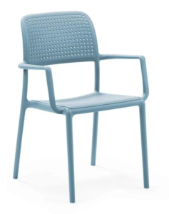 Material: The frame of the Bora chair is made of polypropylene with fiberglass additions. The seat and backrest are designed with openings for better ventilation. The chair is resistant to UV rays, ensuring long-lasting color and material durability.