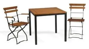 Description: The garden chair Ljubljana ZRN is designed for professional use on hospitality and hotel terraces. Its foldable metal frame made of galvanized iron, protected with durable anthracite paint, provides stability, corrosion resistance, and long service life. The seat and backrest made of wood (impregnated acacia) offer natural weather resistance and long-lasting durability.
