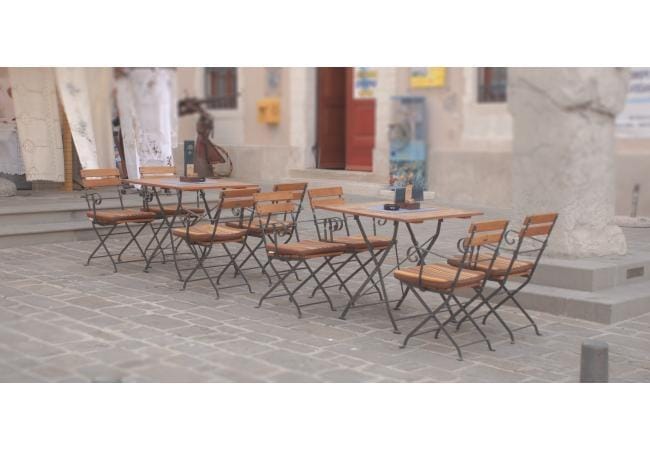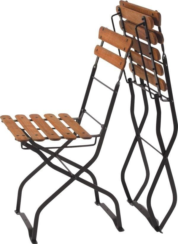 Description: The garden chair Ljubljana BRN is designed for professional use on restaurant and hotel terraces and other outdoor spaces. Its foldable metal frame made of galvanized iron, protected with a durable anthracite coating, ensures stability, corrosion resistance, and longevity. The seat and backrest made of wood (impregnated acacia) offer resistance to weather influences and long-lasting durability.
