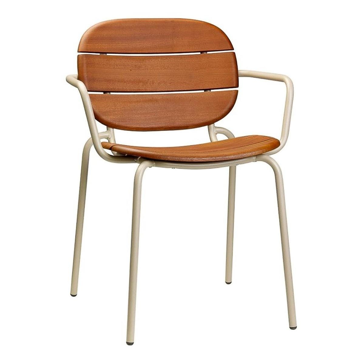 Garden chair Si-Si Wood with armrest, steel frame made of galvanized and powder-coated tubular profile 20 mm, seat and backrest made of solid mahogany Sapelli wood, stackable