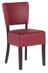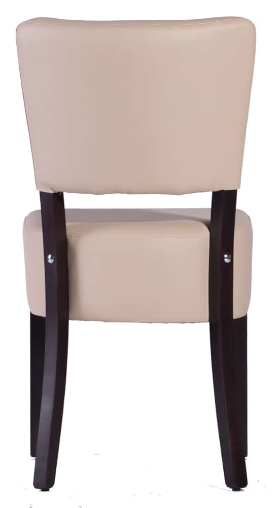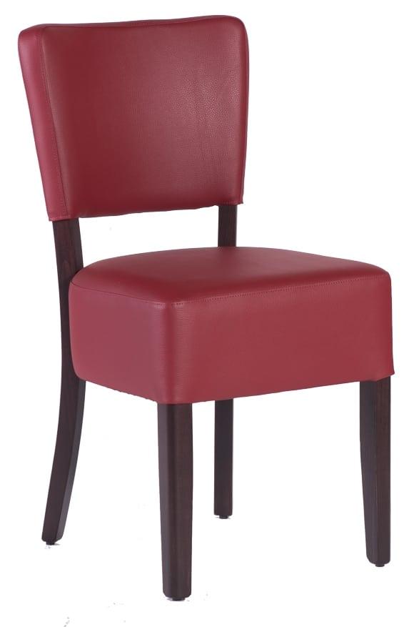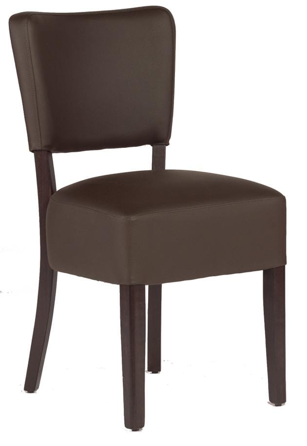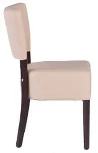 Hospitality indoor chairs Massimo without armrests, flat seat. Massimo chairs have a strong frame made of beech wood. The seat and backrest are upholstered and covered in leather or fabric. Chair dimensions: Height 85 cm, length 42 cm, width 45 cm. Chairs can also be made to order!