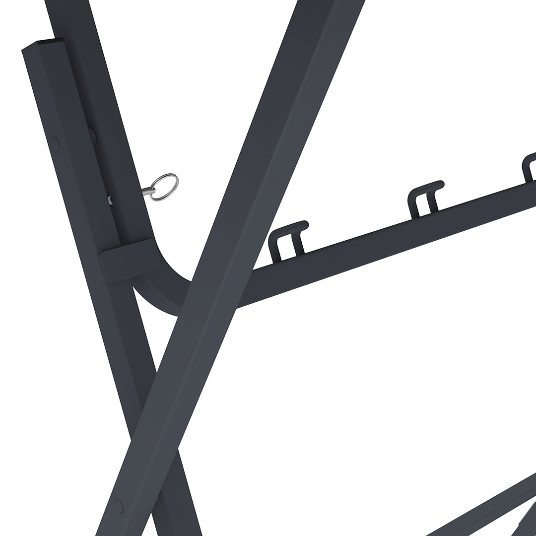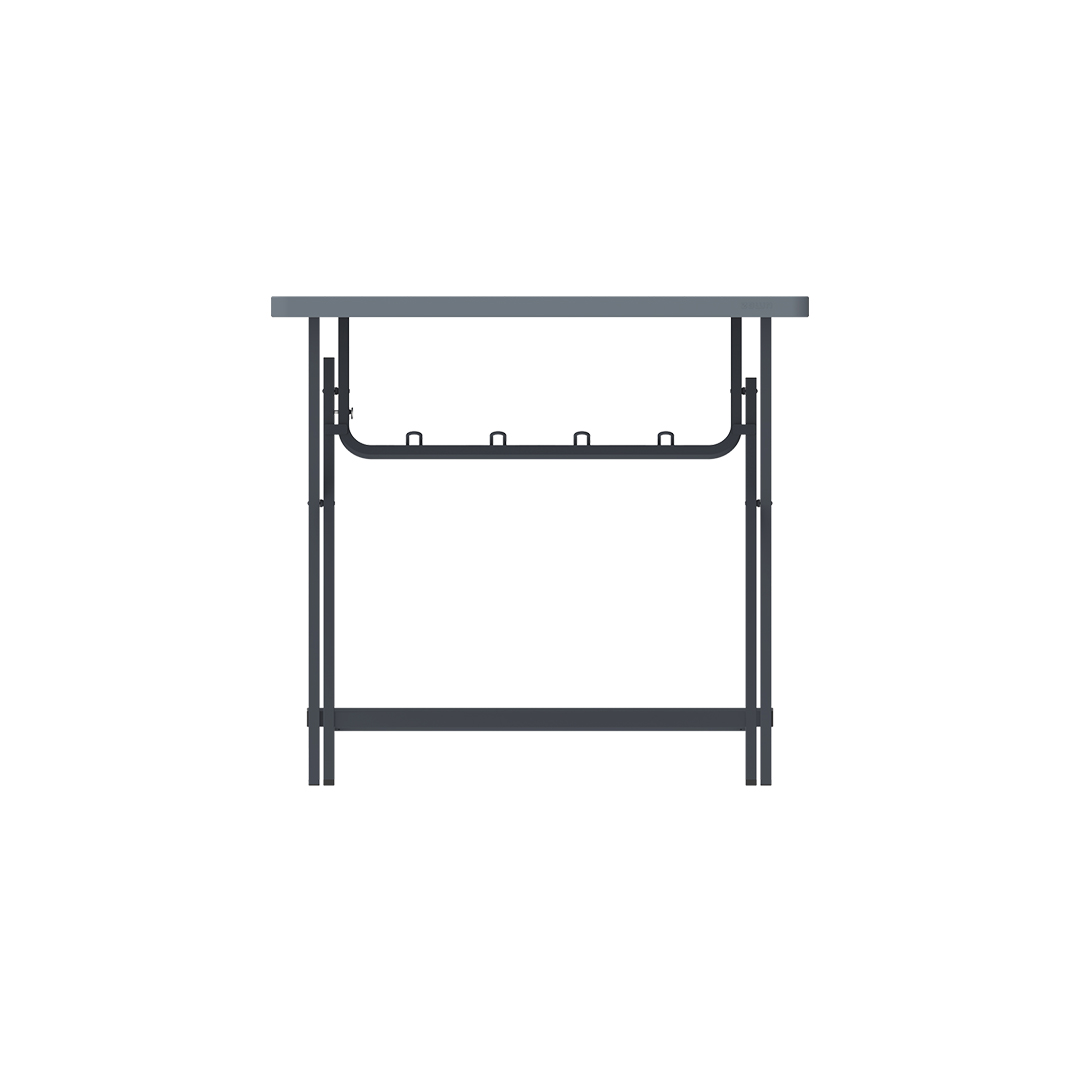 Description: The Cocktail L120 ZOWN table is a rectangular high folding table with dimensions of 122 × 61 cm and a height of 110 cm, designed for professional use at cocktails, receptions, conferences, and other events. Its wider surface allows spacious arrangement of glasses, plates, or working materials, which facilitates interaction between guests standing or at high chairs. Integrated hooks for bags and personal items contribute to an organized space.