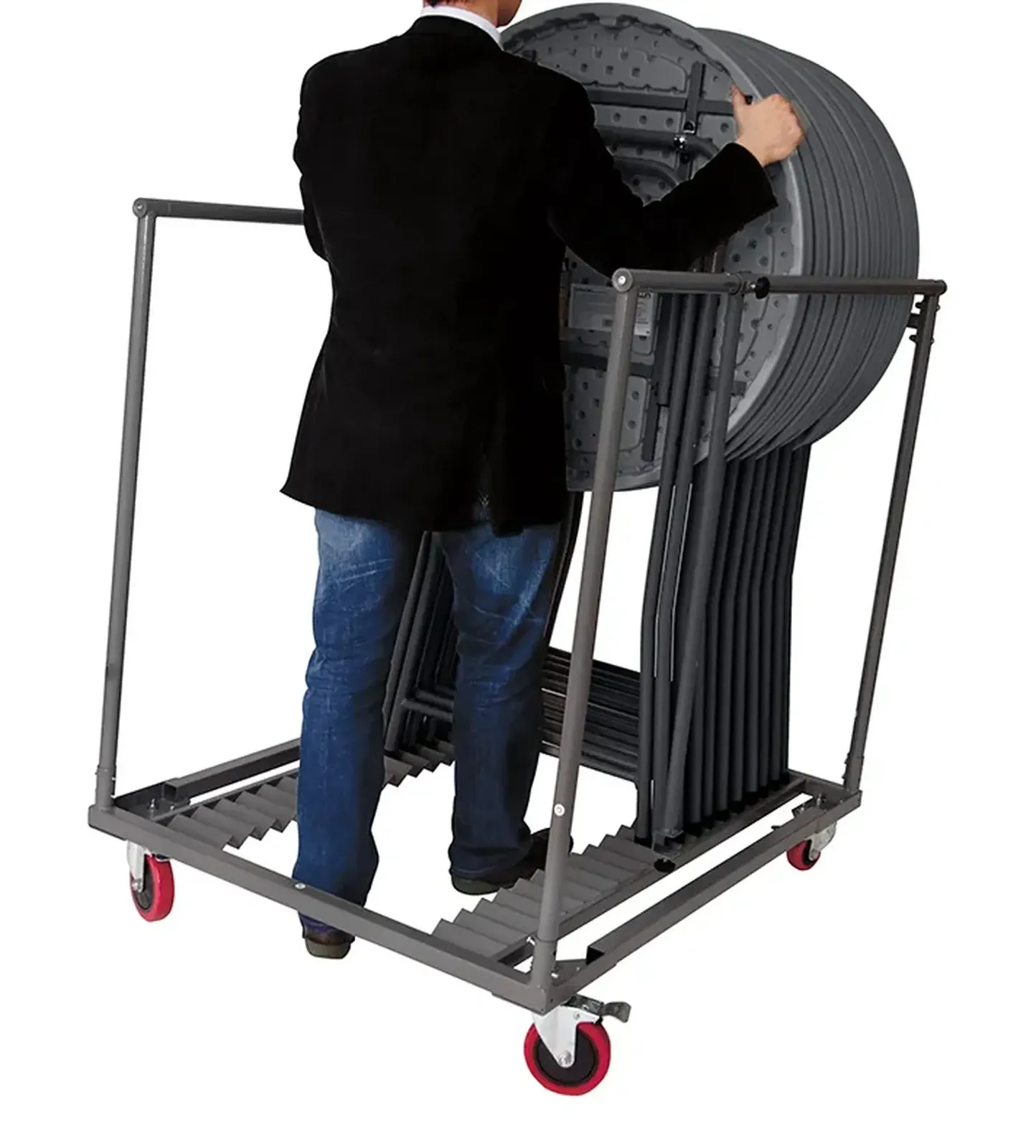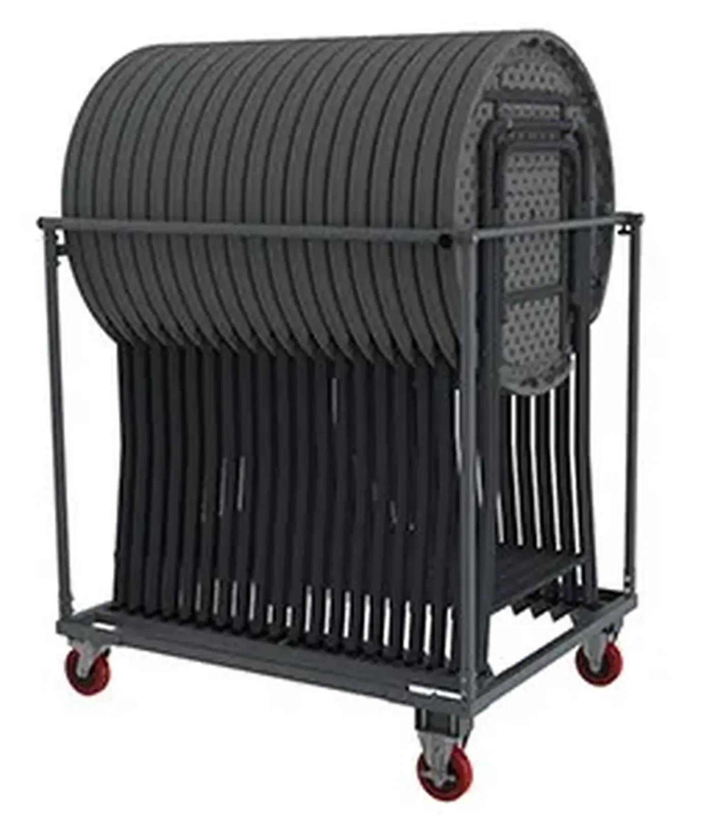 Cart for transporting catering tables cocktail Trolley. The cart’s frame is metal, partially foldable, wheels with brakes. The weight of the empty cart is 24 kg. You can view the official website of the Cocktail Trolley manufacturer here, see the technical sheet for the Cocktail trolley here, view the assembly instructions for the trolley here, view the trolley catalog here. The Cocktail trolley can hold up to 20 Cocktail tables.