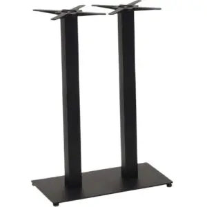 The high bar table base Duplo Nero Bar is designed for use in garden and interior spaces. It is suitable for tabletops up to 120 x 80 cm, offering a wide range of applications and adaptability in various environments. With its sturdy construction, it provides excellent support and stability.