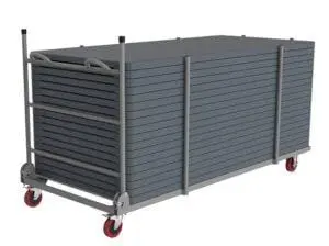 For the transport and storage of tables, the XLtrolley is available, allowing transport of up to 20 XL180 tables. Also available are tablecloths in various designs and colors, adapted for XL180 tables.