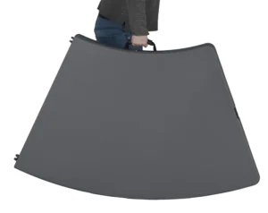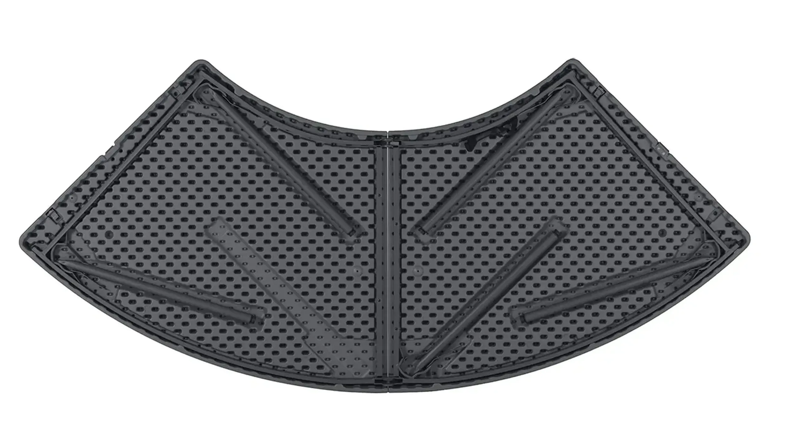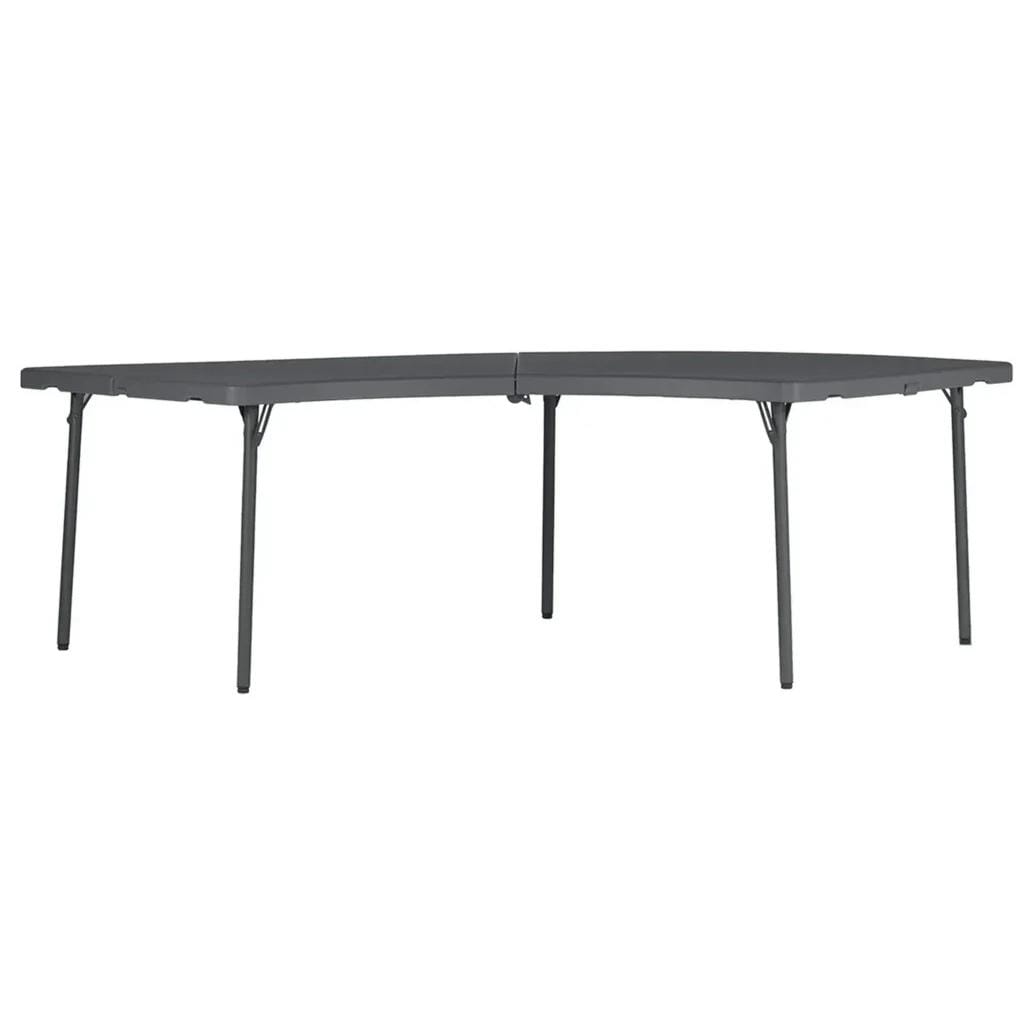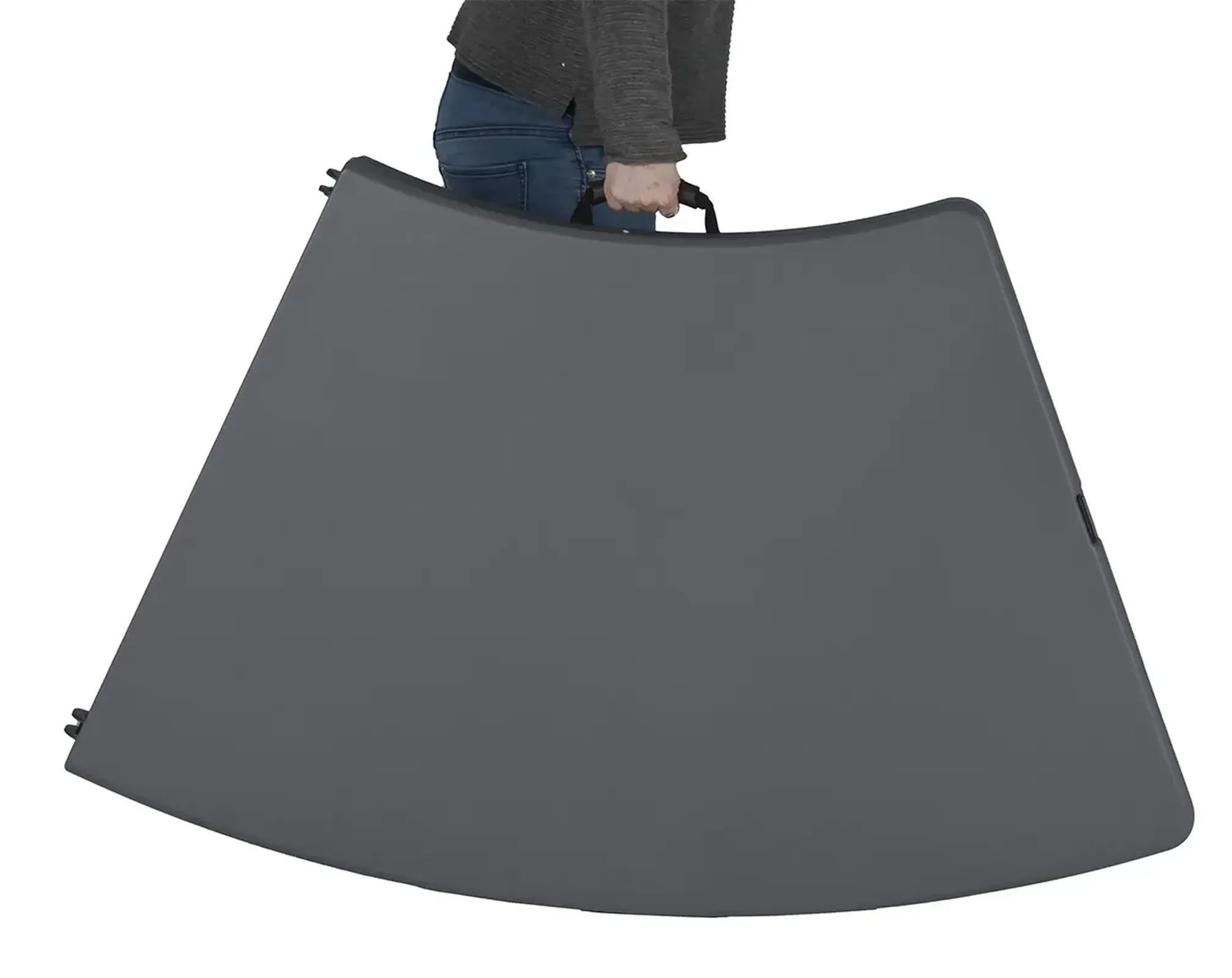 Description: The Classic XXLMoon ZOWN table is a semicircular folding table designed for professional use at various indoor and outdoor events. Its design allows connection with other tables, enabling the creation of different setups. Joining with other tables allows for corner or circular arrangements. By connecting four XXLMoon tables around a Planet180 table, you can create a large round table that accommodates up to 20 people.